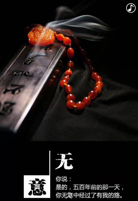 你說:是的,五百年前的那一天,你無意中經過了有我的路,我一直等你,來實現這場擦肩而過的緣。